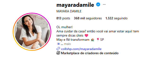 Mayara Damile se destaca por conteúdos de lifestyle, maternidade (se aplicável) e bem-estar. Sua linguagem acolhedora cria conexão com seguidores que buscam dicas reais e práticas para o dia a dia.