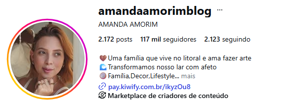 Amanda Amorim é uma influenciadora digital especializada em conteúdo de família, maternidade e rotina cotidiana. Além disso, ela compartilha com sinceridade os desafios e as alegrias da vida em família, o que gera identificação e proximidade com seu público.