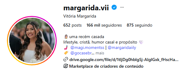 Vitória Margarida é influenciadora digital focada em casa, decoração e lifestyle, onde, além de compartilhar ideias, também apresenta inspirações para ambientes acolhedores e estilosos. Assim, seu conteúdo combina bom gosto e autenticidade, o que atrai seguidores interessados em transformar espaços com praticidade e estilo.